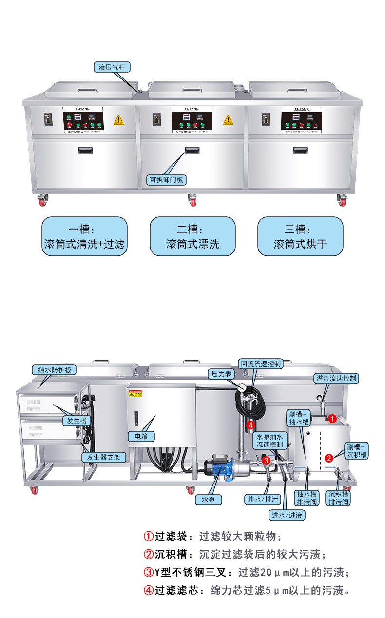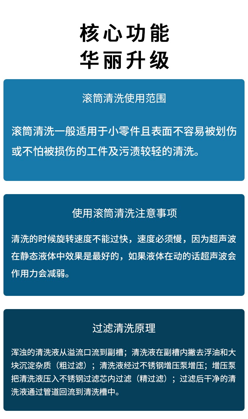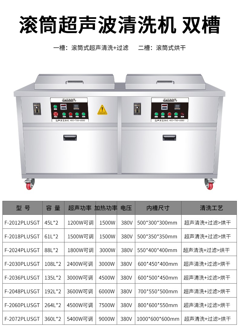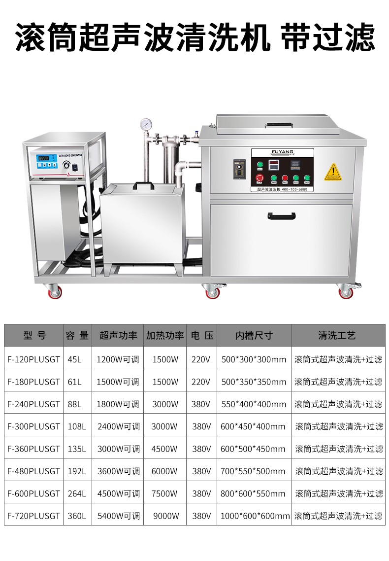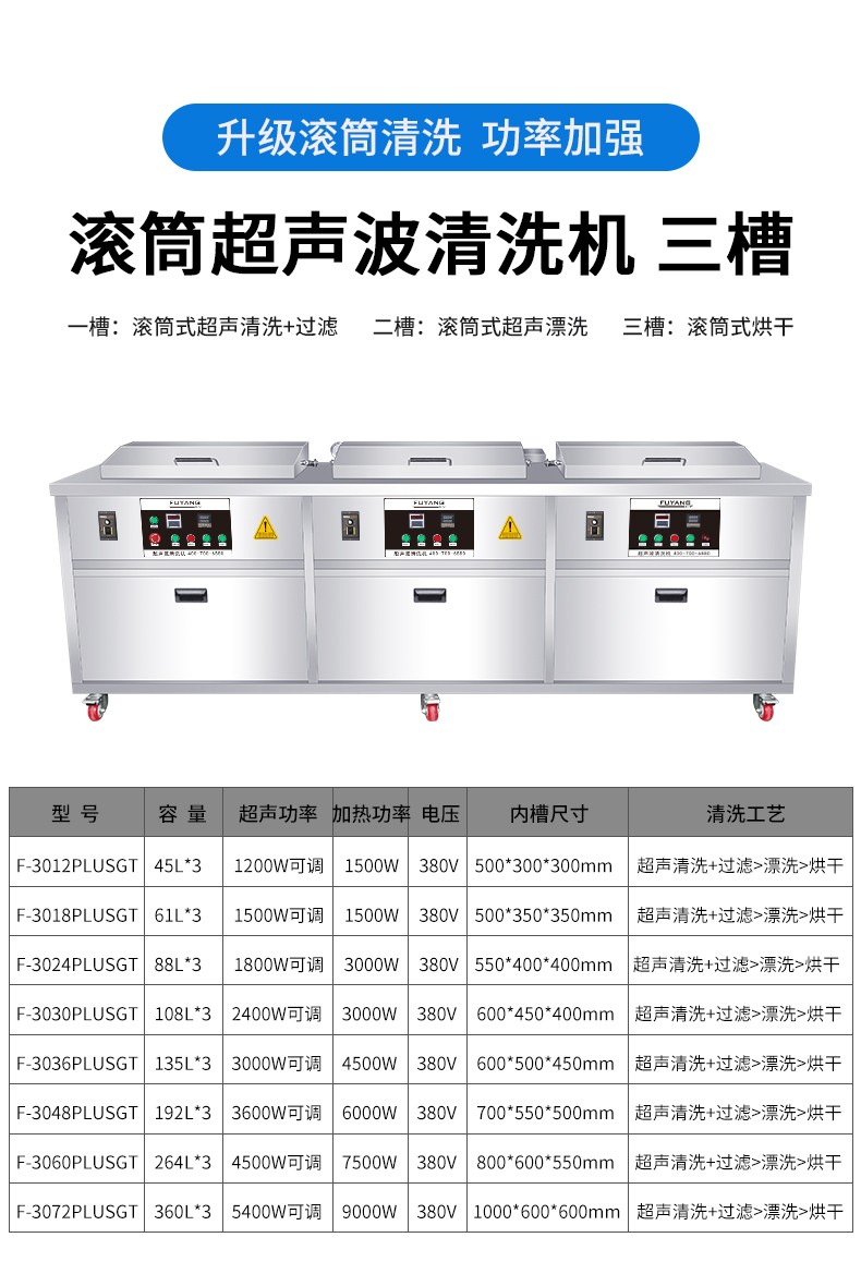 F-3060PLUSGT | 264L 4500W 三槽滚筒式超声波清洗设备