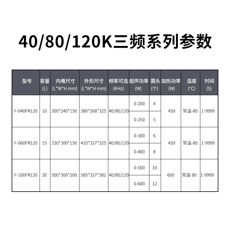 F-100FR120 | 30L 500W 三频台式超声波清洗机