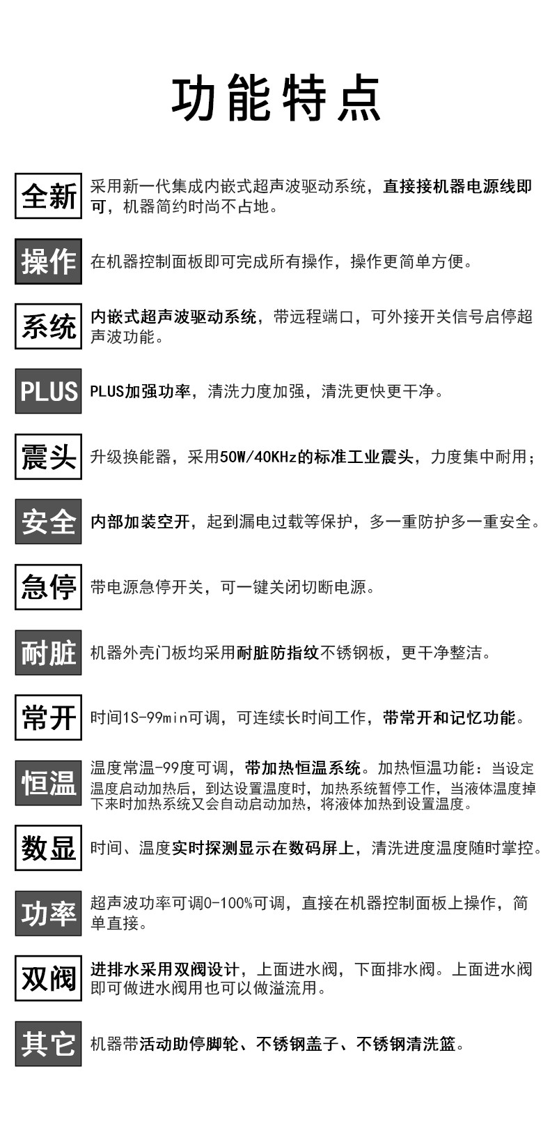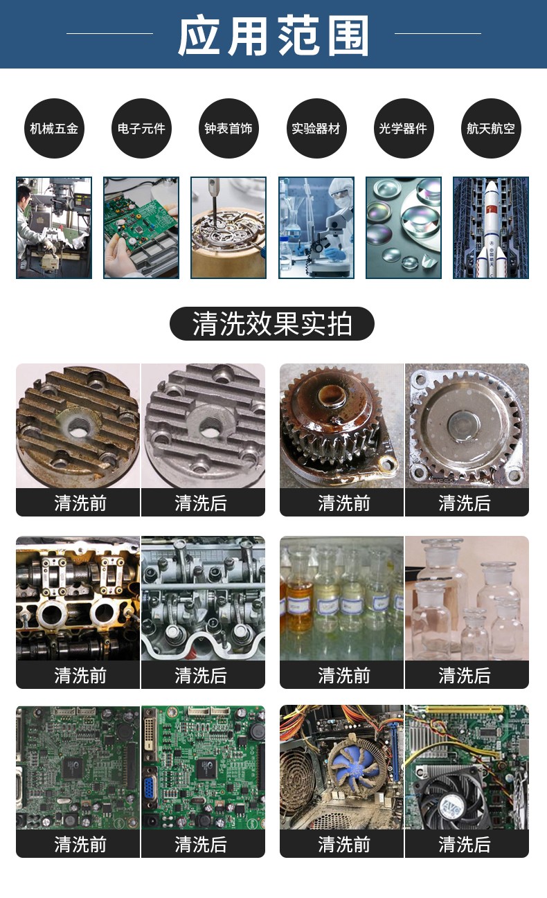 • 超声波清洗机与清洗剂一起使用,清洗效果更佳!