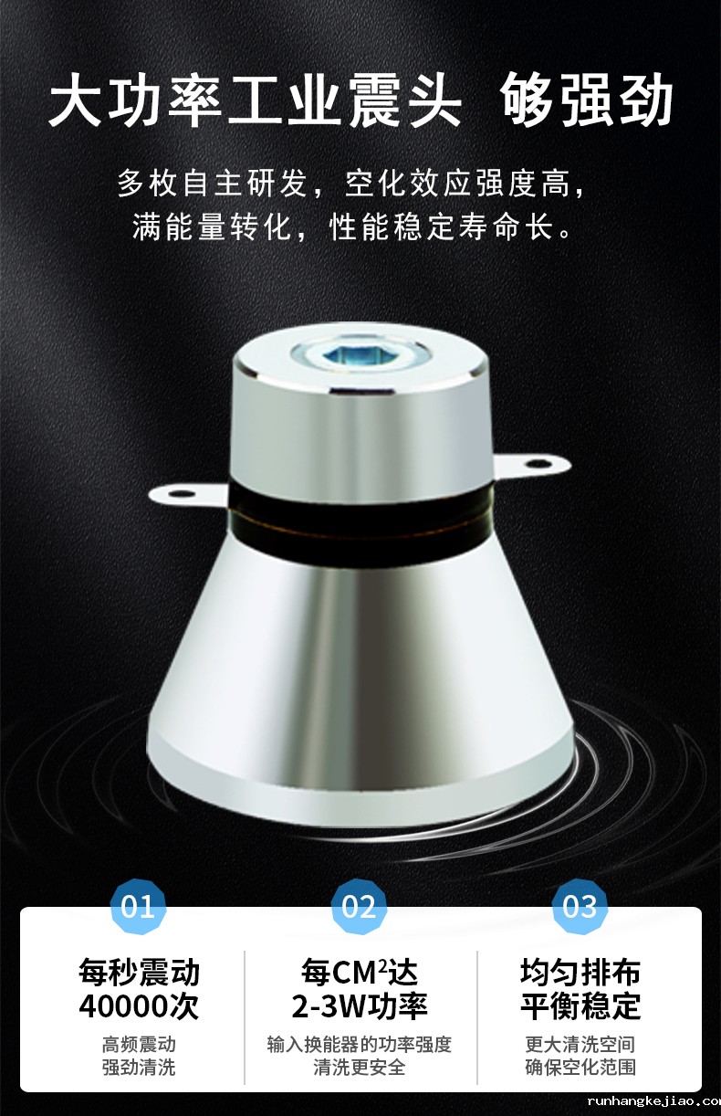 • 工业换能器: 采用工业震头,力度强劲效果佳,可24小时工作;