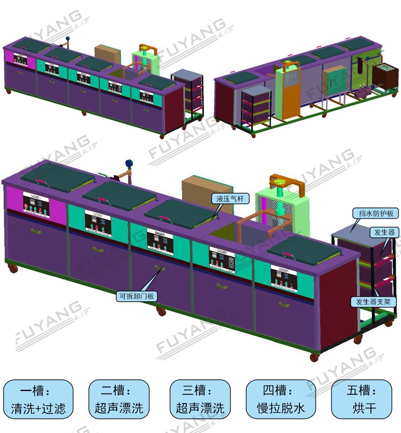 4、操作简便:自动化设计使得操作简单便捷,大大提高了清洗效率,减少了人工劳动强度。